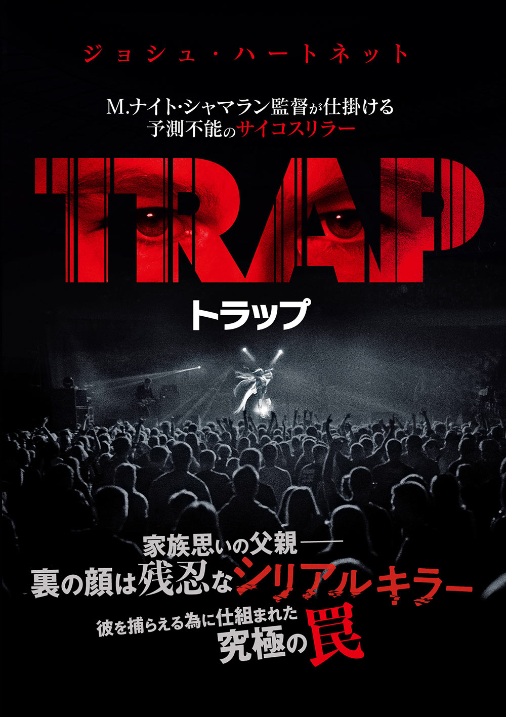 世界的アーティストのアリーナライブを溺愛する娘と楽しむ家族思いの父親は…サイコな切り裂き魔だった。 会場を囲む異常な数の監視カメラと 300 人の警官。3 万人の観客を収容するライブは、彼を捕まえるため仕組まれた前代未聞の”罠”