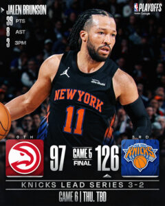 後半に入っても大勢は変わらず。 ブランソンがよりアグレッシブに、KATとOGが良いタッチで得点したニックスが、全てのクォーターでホークスを上回る快勝でシリーズ王手です!!